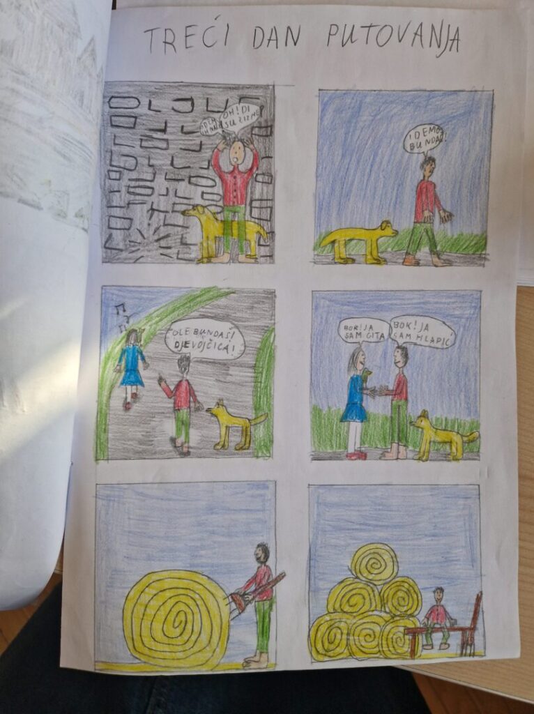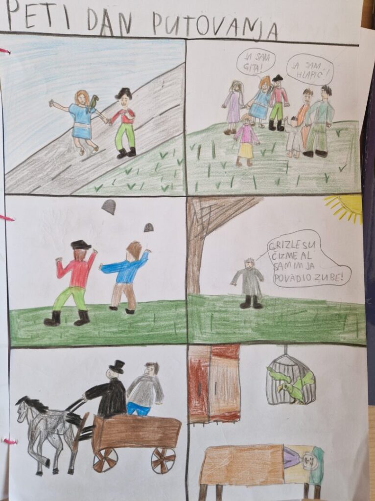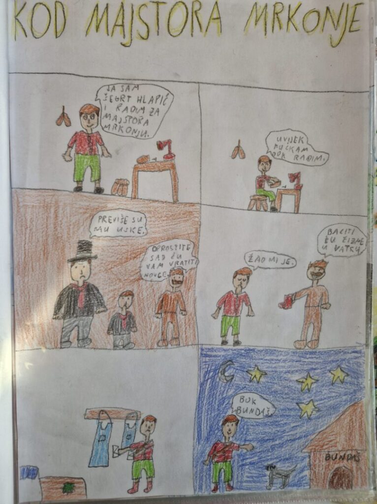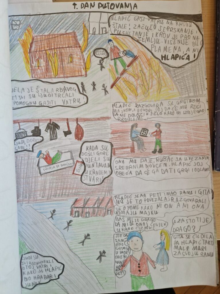 Učenici 3. a razreda ove su školske godine na kreativan način obradili omiljenu lektiru Čudnovate zgode šegrta Hlapića. Umjesto uobičajenog prepričavanja, odlučili su prikazati Hlapićevo sedmodnevno putovanje u obliku stripa.