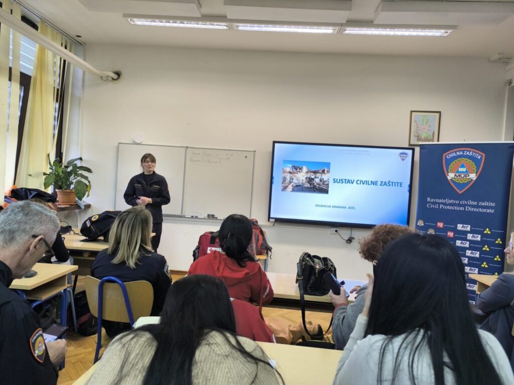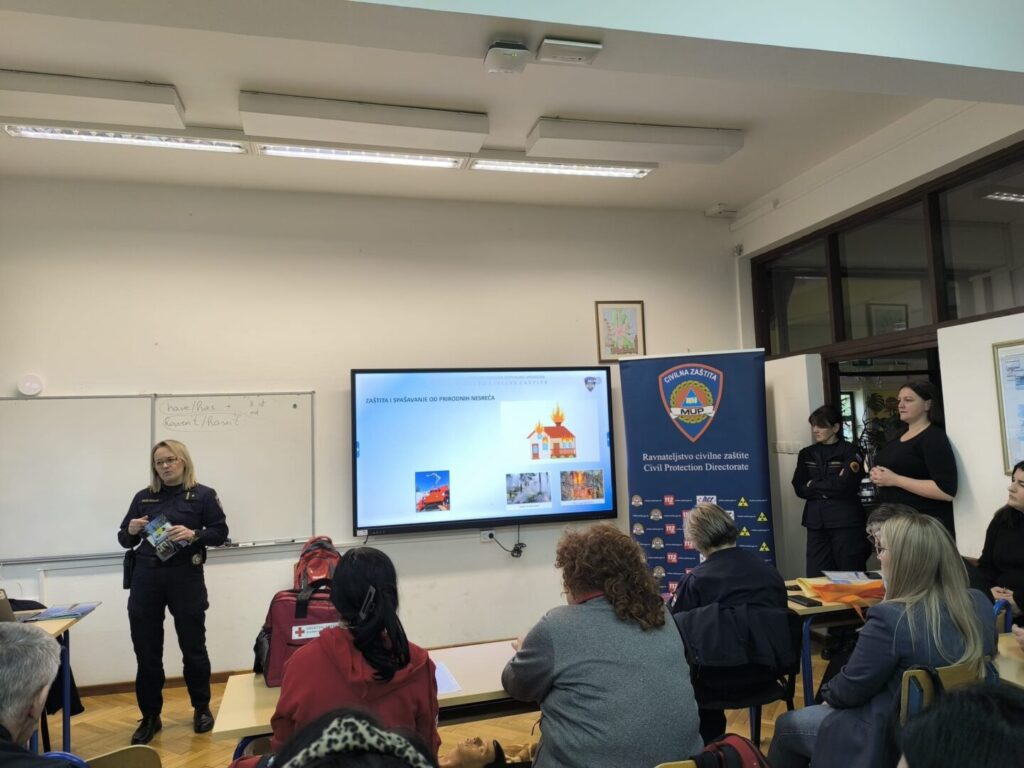 Potom je gđa. Blaženka Budimir, iz ravnateljstva civilne zaštite, sklopu Nacionalnog programa edukacije djece u području zaštite i spašavanja, održala predavanje učenicima 2.a i 2.s razrednog odjela uz prisustvo predškolaca DV Ivančica.