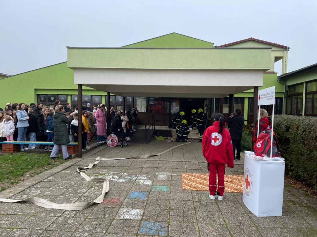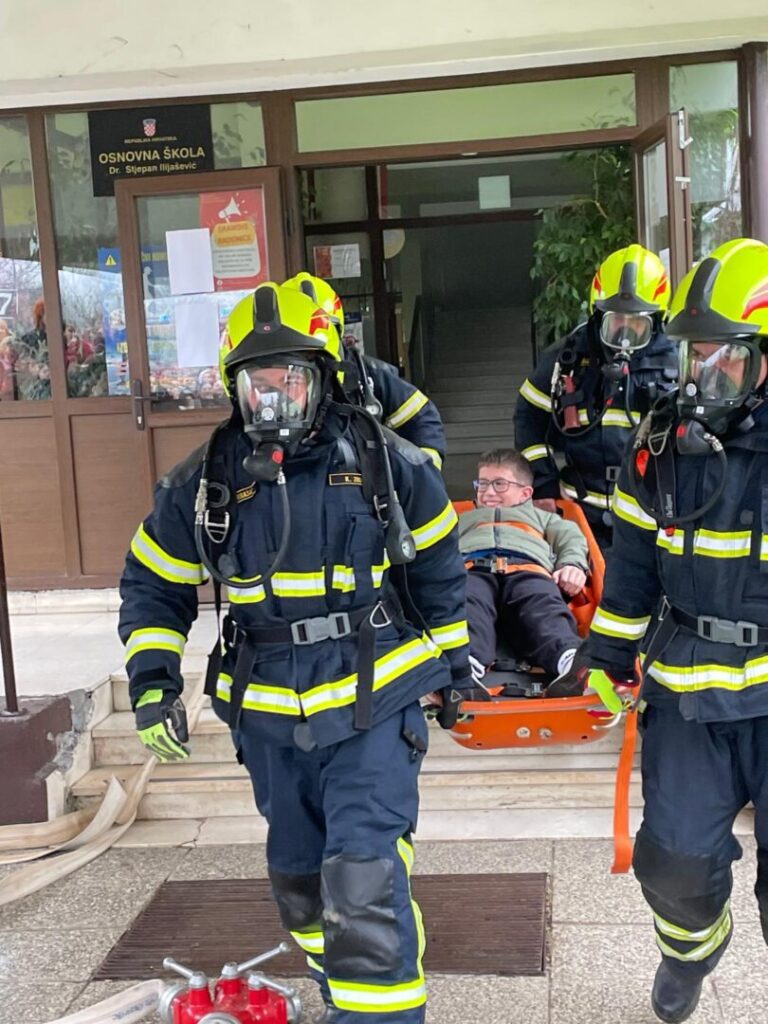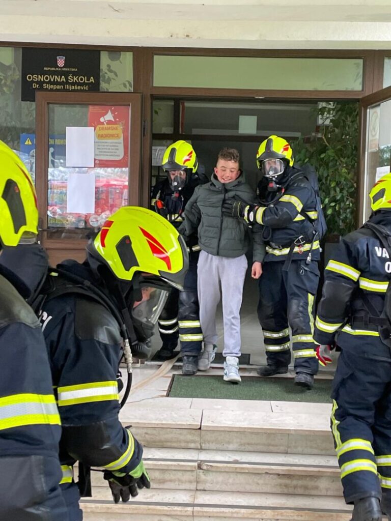 Prema Elaboratu vježbe civilne zaštite u 11:00 sati oglasilo se školsko zvono koje je simuliralo početak požara te su se učenici matične škole, uz prisustvo učenika 2.s i 1.k razrednog odjela, kao i djelatnici i svi posjetitelji, unaprijed utvrđenim evakuacijskim putovima uspješno evakuirali iz škole. Kako je simulacijom predviđeno da dva učenika ostanu „zarobljena“ u požaru, nastupila je pokazna vježba uspješnog spašavanja istih. Učenike je kroz vježbu vodila moderatorica Darija Jozić Ratković.